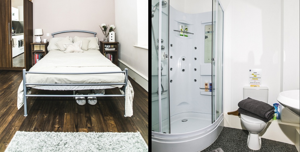 - En-suite bedrooms with private bathrooms and shared kitchens
