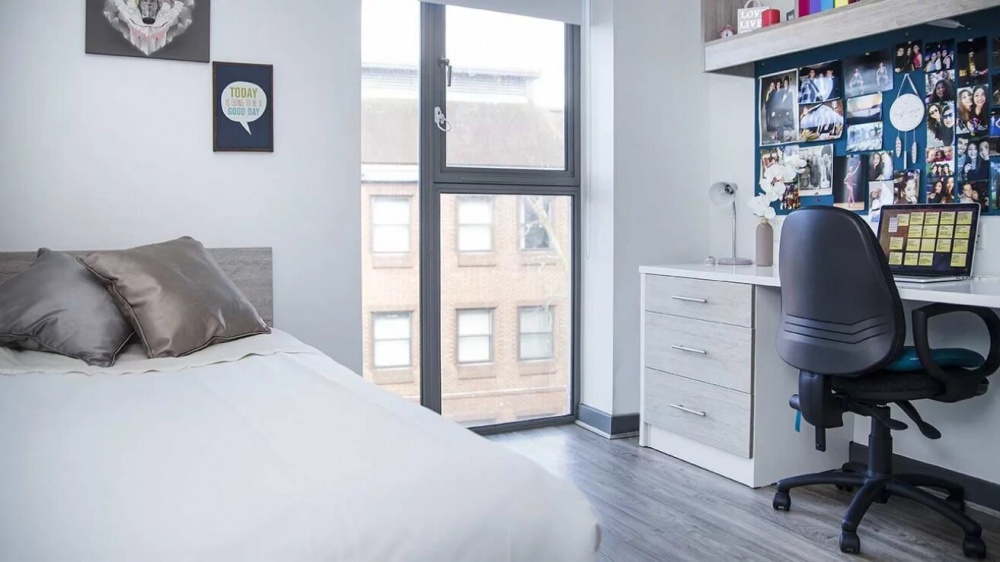 Our Premium rooms feature larger windows allowing more natural light in so you can crack on with studying at your desk or chill out on your large bed with underbed storage. This room style also features wall storage and a double wardrobe with shelves, hanging rail and a full length mirror. You’ll have your very own en-suite bathroom, along with access to the communal kitchen and living space. Book your room now!
