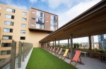 Venture to the first floor to discover additional lounging areas and a terrace overlooking the garden, while the upper floors boast a quiet study room and a rooftop terrace boasting panoramic views and more artificial grass, deckchairs, and seating areas.