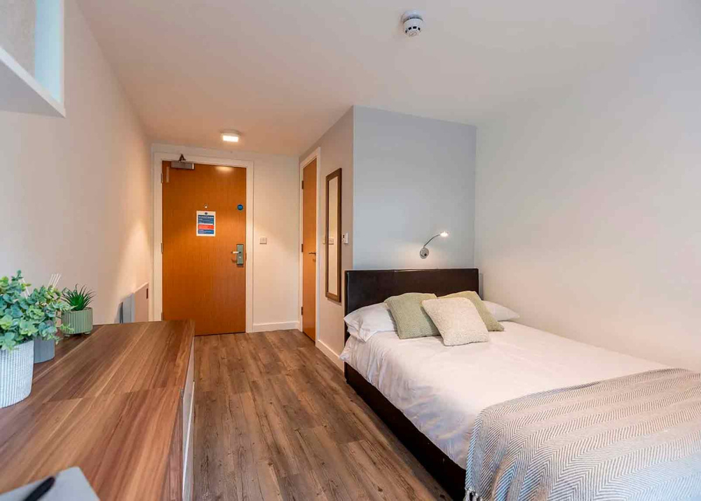 Newly refurbished for September our studio rooms are bright, spacious and perfect for modern student living. Equipped with your very own private bathroom and kitchenette, your room will come with its own comfortable bed, study desk and chair, and wardrobe. 2026-27 Joint Occupancy 51 Week Tenancy 230,00 GBP pppw Allows room sharing |