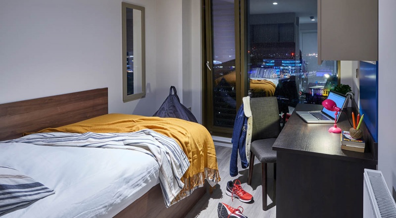 This luxury Premium Studio, measuring around 18-19m², is located on the top floors and offers stunning sea views. It comes with a large bed, contemporary fitted kitchenette and fully-fitted en-suite with large shower. Access to a study lounge and gaming area and 100Mbps Wi-Fi.
