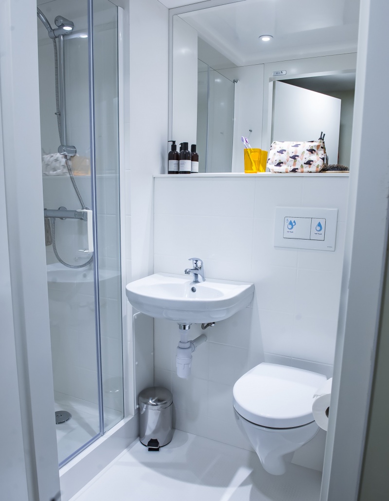 You can keep your studio bright and airy, and enjoy those views, with its amazing floor-to-ceiling windows, or usher in a bit of ambiance with its blackout curtains – perfect for making sure you get your beauty sleep! On the wall there’s a full-length mirror (perfect for those pre-night-out snaps!), with sockets underneath making trailing hair dryer/straightener cables a thing of the past. You’ll also have a stunning en-suite bathroom, with a toilet, sink, a power shower, and an extra-large mirror, so you can make sure you always look your best! All studios come with all bills included!