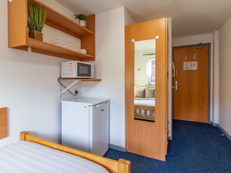A very large 28m2 Classic self-contained studio. With full sized double bed, double wardrobe, lots of storage, huge study desk, en-suite bathroom, a private kitchenette with access to common cluster kitchens and our super-fast internet.