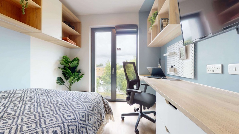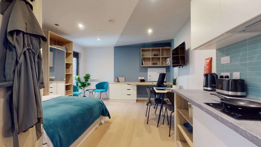 Relax and unwind in our Studio Plus (approx 18.00m² to 19.90m²), the perfect space with everything the modern student needs! Featuring a comfy double bed, lots of storage, your own private ensuite, you’re bound to fall in love from the moment you move in. Enjoy cooking in your own fabulous kitchen, which is equipped with brand new facilities! When it’s time to focus, crack on with university work at your own study desk and enjoy the peace with no distractions.