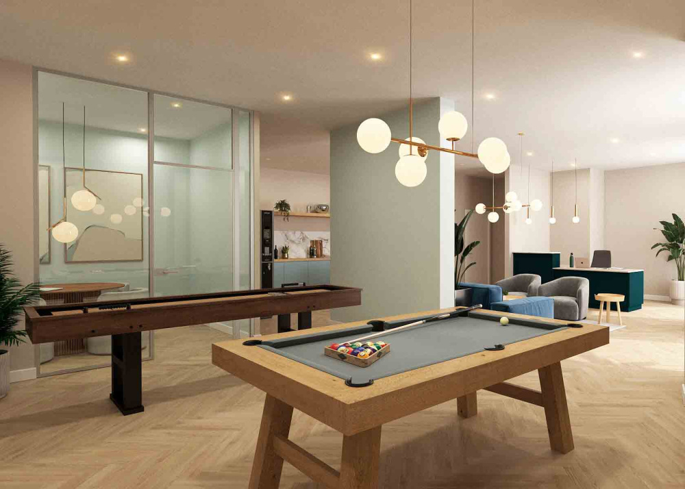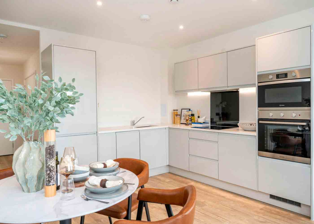 From £2,100 pm Our 2-bedroom apartments offer more space and flexibility, ideal for sharers, couples or families. Inside, you’ll find a generous open-plan kitchen, dining and living space with floor-to-ceiling windows that lead directly onto a private balcony. Our Kitchens are equipped with integrated appliances including an electric hob, oven, dishwasher and fridge freezer, and there’s a separate utility cupboard with a washing machine. |