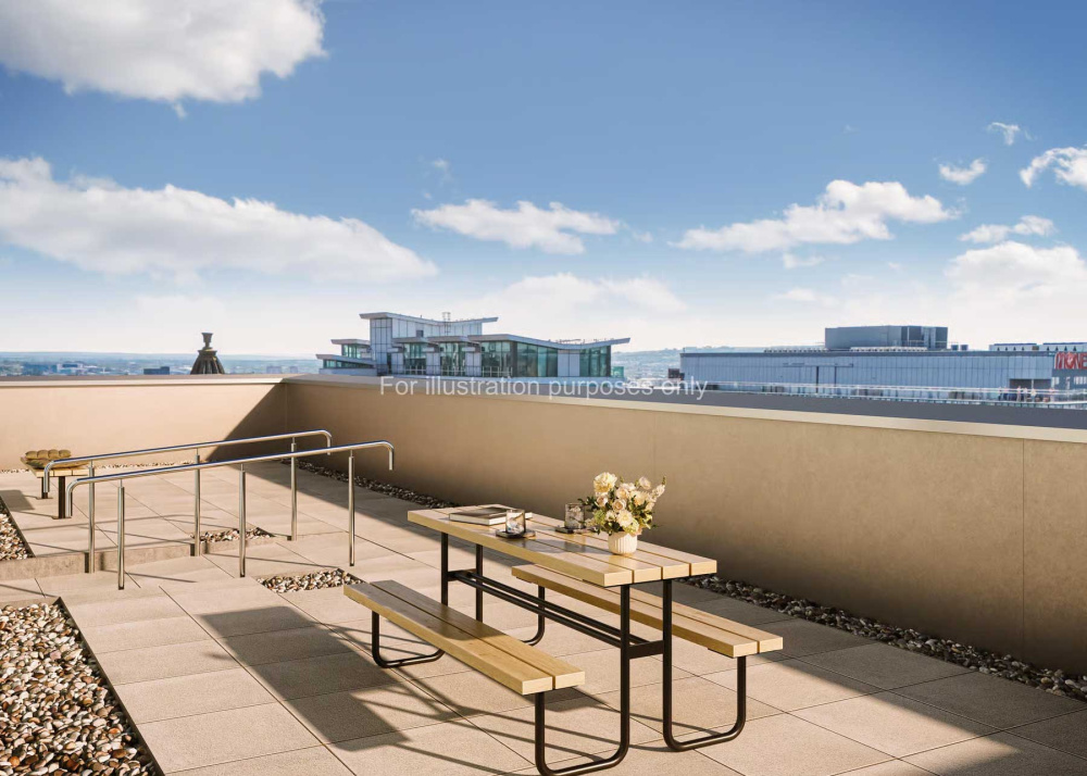 - Rooftop terrace with views across Glasgow
