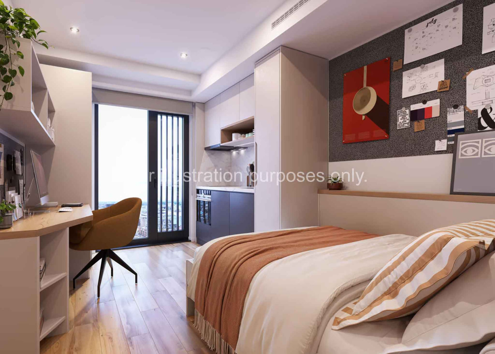 Spanning a generous 18.1m2 to 19.3m2 across floors 1 to 9, these studios offer a perfectly balanced sanctuary for focus and relaxation. Each studio is a self-contained haven, featuring a comfortable bed, a dedicated study desk for academic excellence, and ample storage with a spacious wardrobe. Enjoy the convenience of your own fully equipped kitchen and a sleek, private bathroom. |