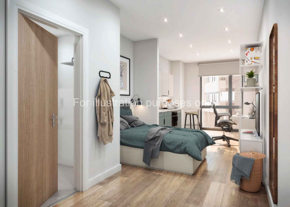 The Deluxe Ensuite provides exceptional space, spanning 27-31 square metres across floors two to seven. This generously proportioned room features a contemporary wetroom. Share a spacious kitchen with your five flatmates, where the additional room creates a genuine sense of hom |