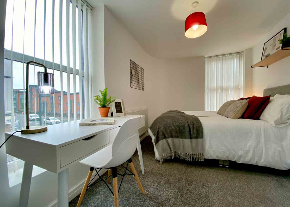 The Groves - 2 Bedroom House in Liverpool / All bills included. This stylish two-bedroom apartment offers modern student living in a well-connected location. Each bedroom includes a desk, comfortable chair, and ample storage, while a private balcony adds a rare outdoor space to enjoy. The spacious living room features a plush sofa and large flat-screen TV perfect for relaxing or socialising with a dedicated dining area for shared meals and gatherings. The kitchen is fully equipped with modern appliances and a fridge freezer, and communal washing and drying facilities are available on site. Visit our website to explore our homes in more detail and find similar houses that are the perfect fit for the academic year. |