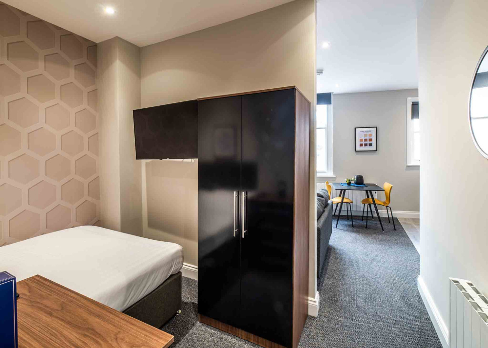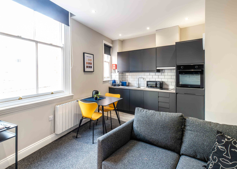 Canning Place offers studio apartments and two and three-bedroom apartments, all individually designed and fully furnished with a double bed, Smart TV, fitted kitchen and private bathroom with rainfall shower.