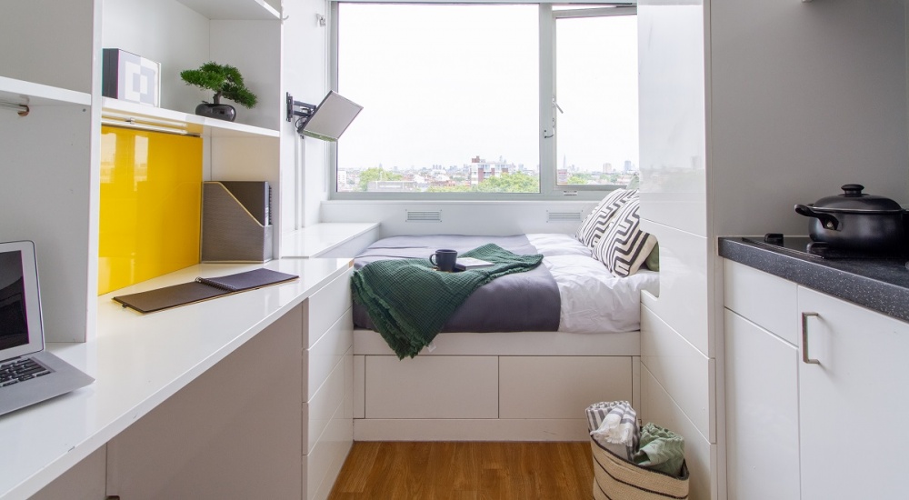 Our self-contained Sapphire View Studio is located on a higher floor with big airy windows. Measuring around 13m², your studio comes with a comfy ¾ bed, perfect to snuggle into after a long day at uni. With an en suite bathroom, a fully equipped kitchenette, a handy study area and a wardrobe, you’ll feel right at home in no time. On an evening, sit back, relax, and watch a film, or surf the web with your 1Gbps WIFI!