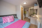 PLUS rooms include additional facilities including a larger 43" SMART TV, kettle, toaster, desk lamp, storage and full length mirror. Your rent is inclusive of bills, free WiFi, on-site gym, bike storage & social area. Each room contains a double bed with bedside table, study area with chair, kitchen with combi-oven, hob and fridge with freezer compartment, and en-suite shower room. This room type is available for double occupancies. Floor space for this room type range from 16 - 17 square meters. |