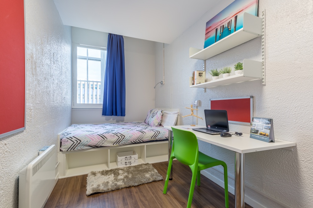 The Old Mill’s 4 Bedroom Flat offers a shared-accommodation experience with fellow students and friends. A typical cluster flat here offers a good-size living area, a desk and chair, a wardrobe with shelves, a wall-mounted bookcase, a 3/4 bed, and stylish vinyl flooring. You’ll also get an open-plan shared kitchen/living room, with a separate shower room and toilet. Your room will have a 100Mb/s internet connection (speed may vary depending on the signal strength and device in use) and, best of all, you’ll have all bills included – heating, electricity, and internet – so no hassle for you |