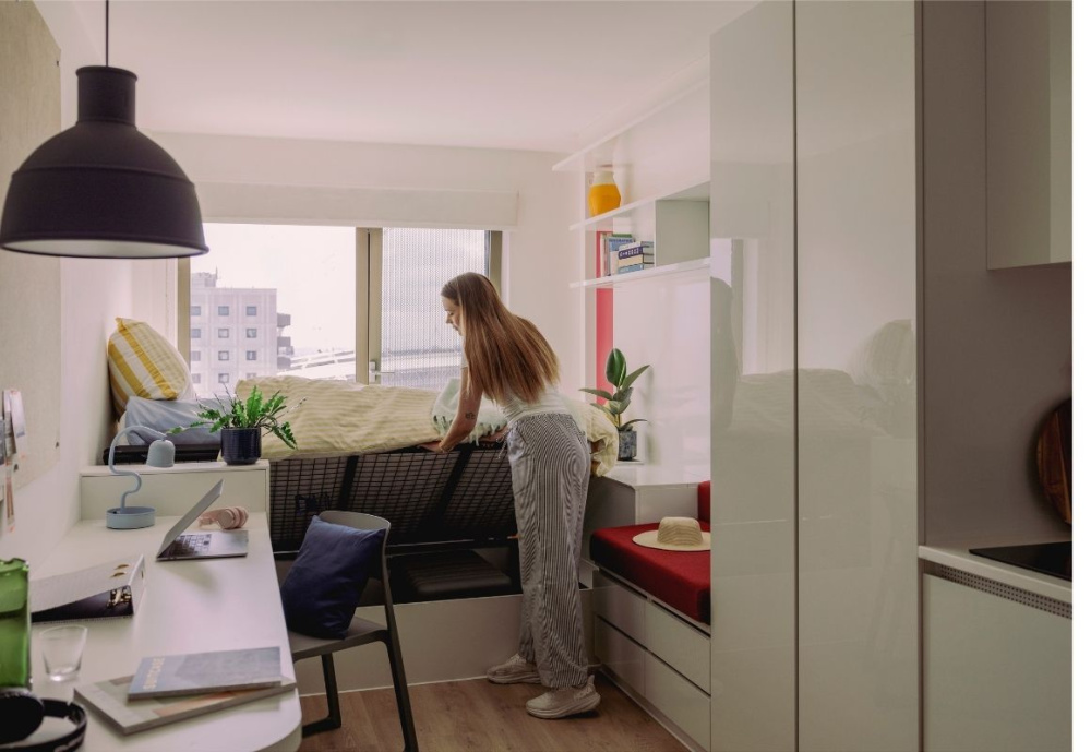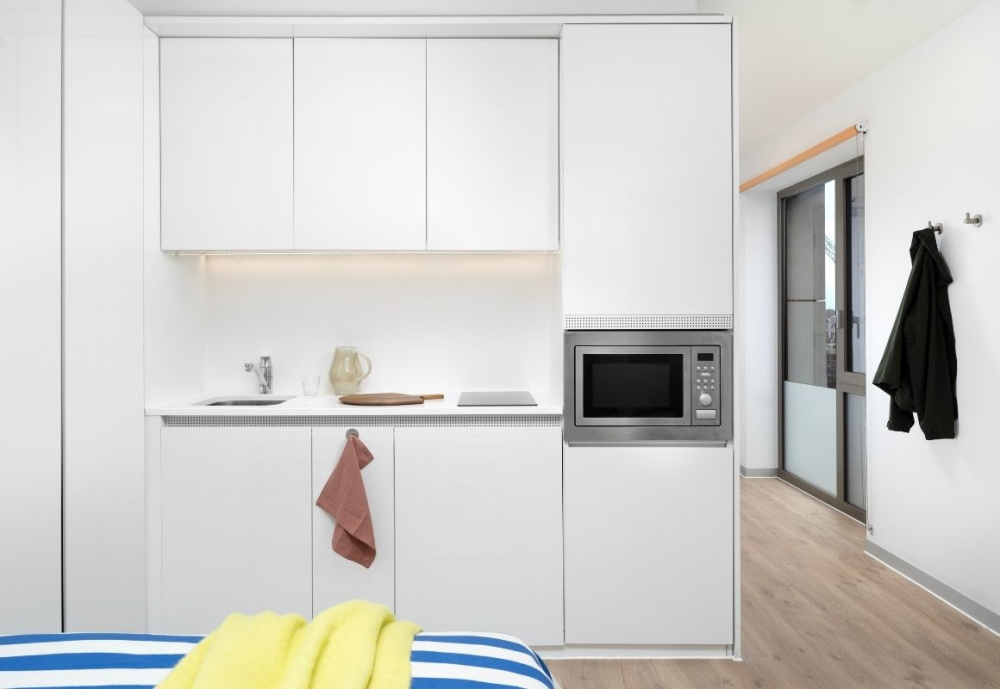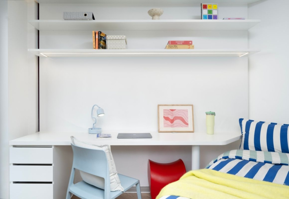 - Private studios with kitchenette, ensuite bathroom and storage