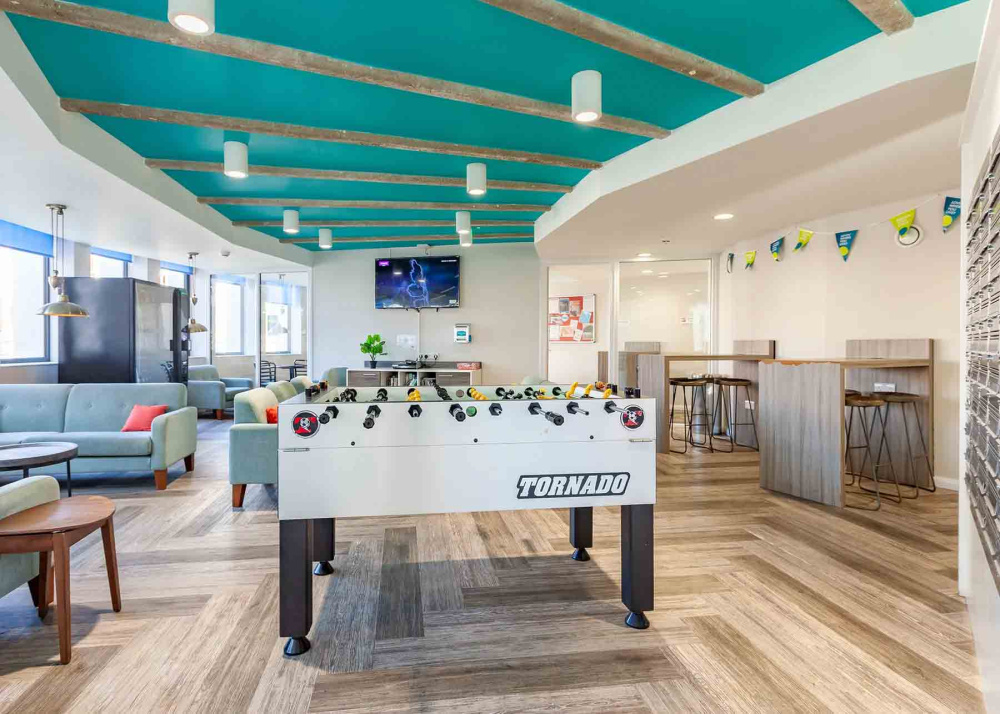 Downstairs you can also make the most of the social spaces at Mercury House. There is plenty of room to set up a study session with friends, or unwind with a game of table football. Or simply just relax and watch a movie in the TV area.