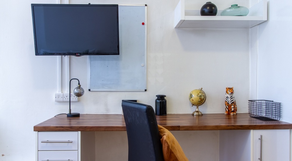 Everyone loves having their own personal space, so why not have bags of it? Our Self-contained Deluxe Studio measures 22m² with fabulously large windows to create that fresh, chilled vibe. Sink into your 3/4 bed after a tough day at university and catch the soaps on your very own TV! With the comfort of your own en suite and snazzy fitted kitchenette, you’re bound to feel right at home in no time! Surf the web with your 100Mpbs WIFI and crack on with your studying at your very own desk.