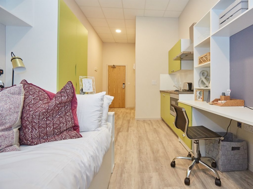 Each room includes a comfy small double bed, plenty of storage, a dedicated study space, and a modern en suite bathroom. The only thing you need to decide is whether to cook solo in your own kitchen or share mealtimes in a shared flat with friends.